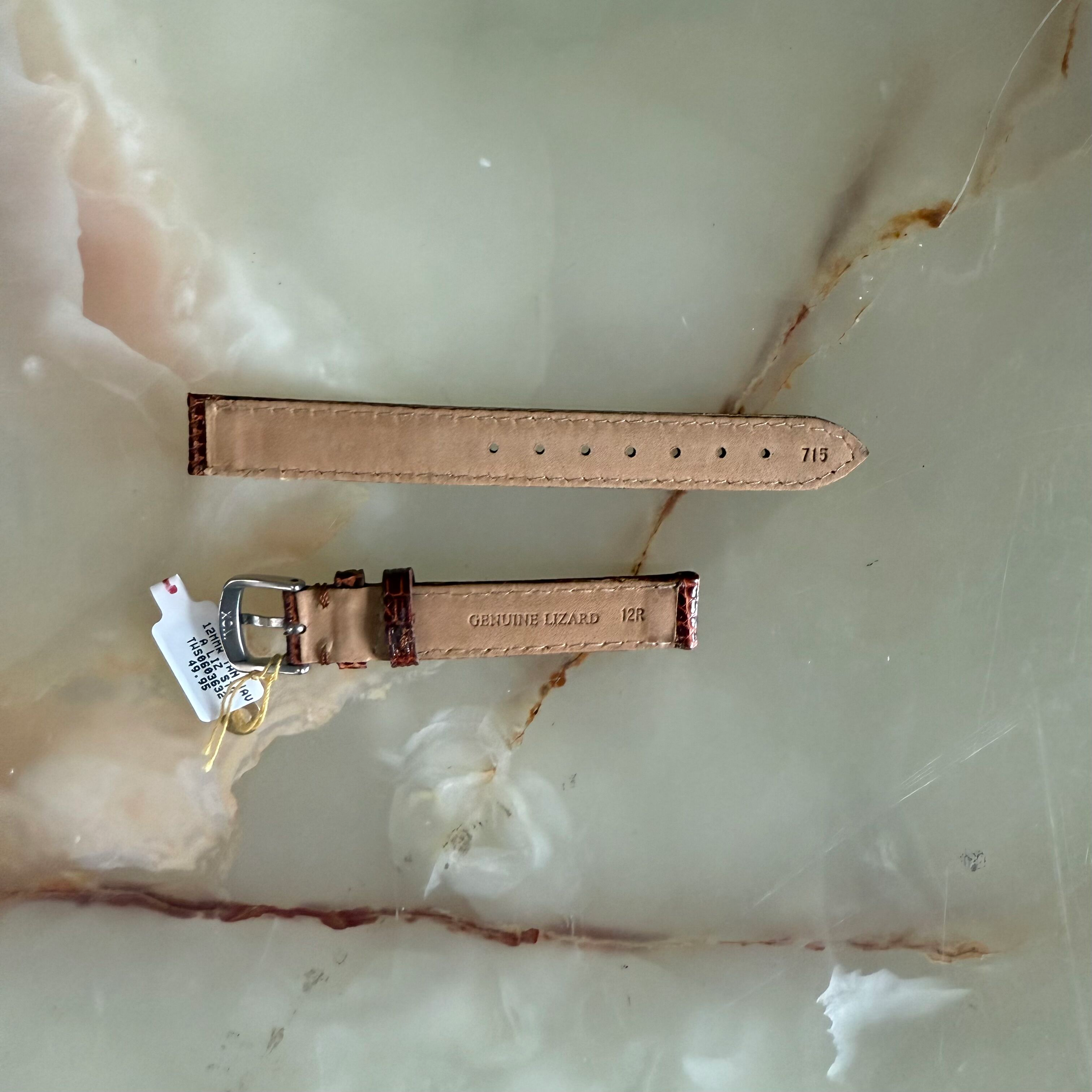 NOS Genuine Lizard Brown Watch Strap Band 12mm-12mm S 105mm - 65mm Padded & Stitched w Buckle